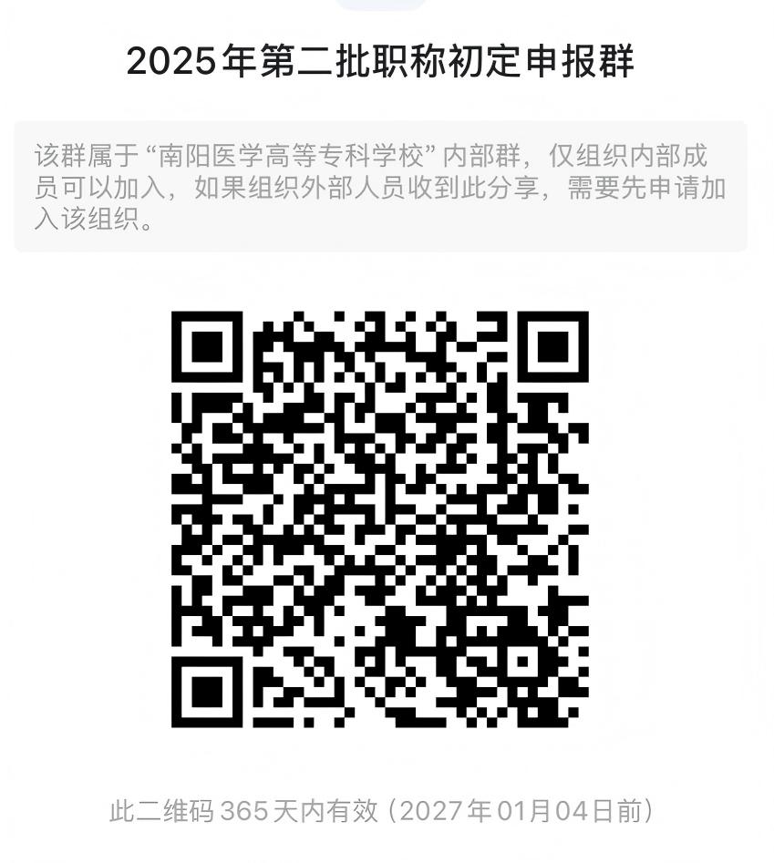 请申报人员于2026年1月6日18:00前(逾期不予受理)钉钉扫码加入“2025年第二批职称初定申报群”并提交线上申请。经人事处初审通过后为符合条件人员开通申报账号,由申报人登录河南省人力资源和社会保障厅官网职称申报系统填报信息,审核通过后报送纸质材料。